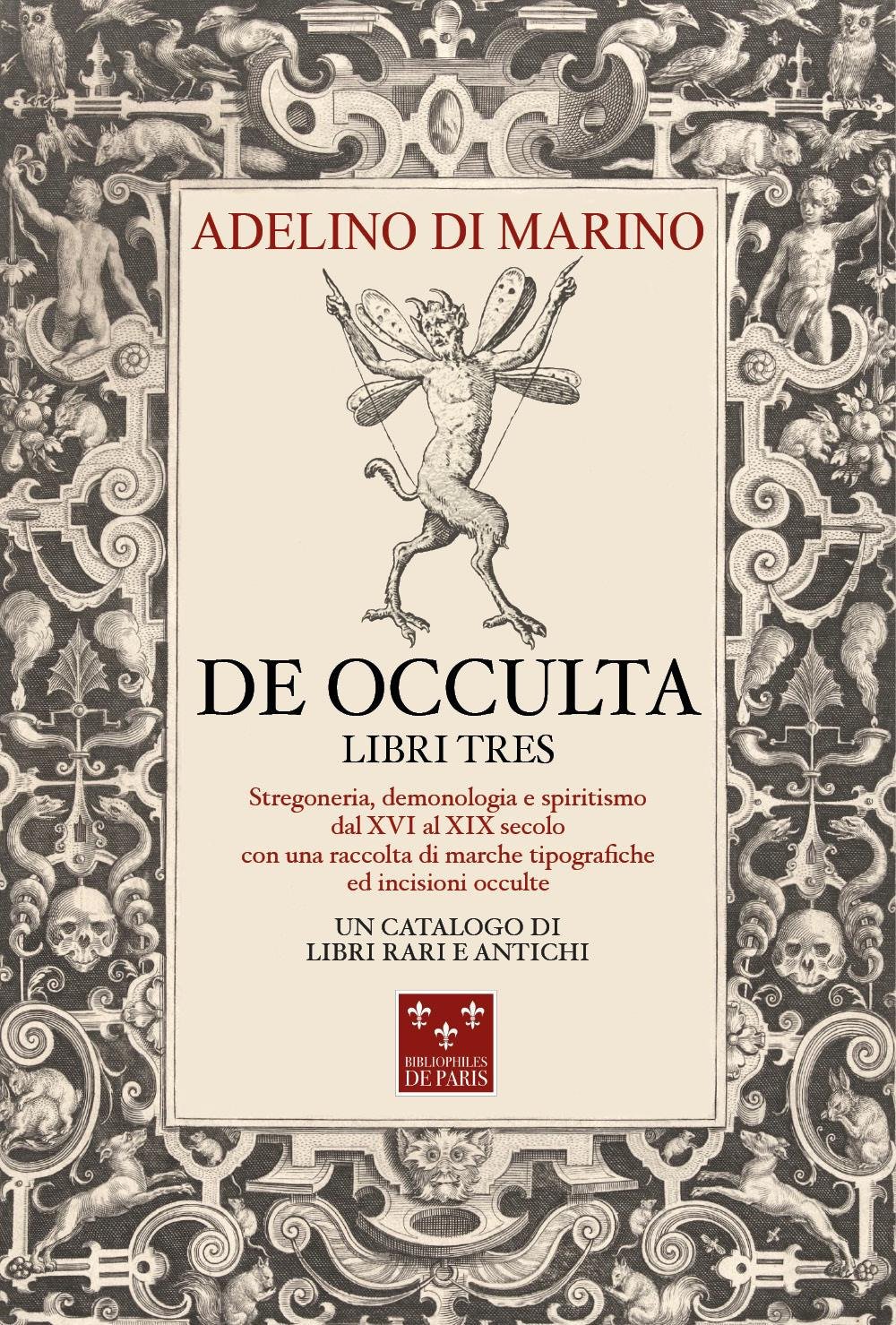 "De Occulta" è un prezioso catalogo di libri e stampe rare e antiche provenienti da diverse collezioni private in tutto il mondo. Stregoneria, caccia alle streghe, inquisitori, demonologia e apparizioni di spiriti trovano una loro collocazione in un catalogo che permette al lettore di tuffarsi nel mondo dell'occulto. Il volume è diviso in tre parti, una dedicata ad esemplari pubblicati tra il XVI ed il XIX secolo, una dedicata alle marche tipografiche ed infine una parte dedicata ad incisioni occulte. Questo catalogo è stato realizzato grazie al contributo della società dei Bibliophiles de Paris, fondata in Francia nel 1895, della collezione privata Moureau di Parigi, della collezione privata Bennett di New York e della Libreria Antiquaria Gozzini di Firenze e con la partecipazione di librerie italiane ed internazionali. De Occulta si rivolge a tutti gli appassionati dei libri antichi e dell'occulto, ma oltre ad essere uno strumento di studio e di ricerca per gli esperti e gli studiosi, si apre anche al più curioso lettore.