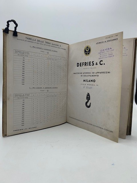 Defries & C. Macchine utensili ed apparecchi di sollevamento. Milano. Apparecchi di sollevamento. Volume VII - 1941