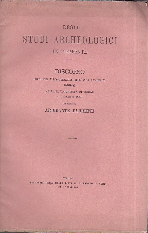 Degli studi archeologici in Piemonte. Discorso letto per l' inaugurazione dell' anno accademico 1880 - 81 nella R. Università di Torino li 3 novembre 1880