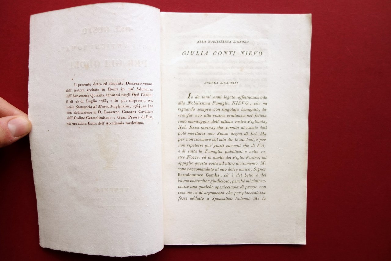Del Gusto degli Antichi Romani per gli Odori Querci Alvisopoli Venezia 1833 Raro