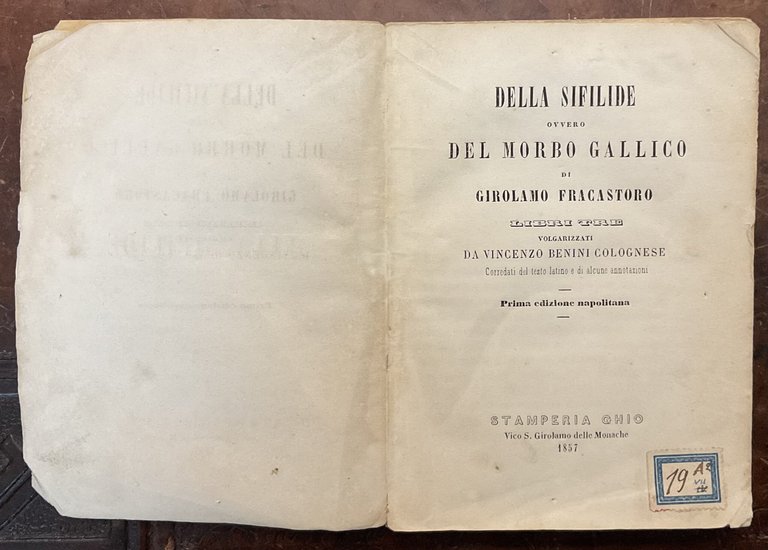 Della sifilide ovvero del morbo gallico di Girolamo Fracastoro. Libri tre, volgarizzati da Vincenzo Benini Colognese
