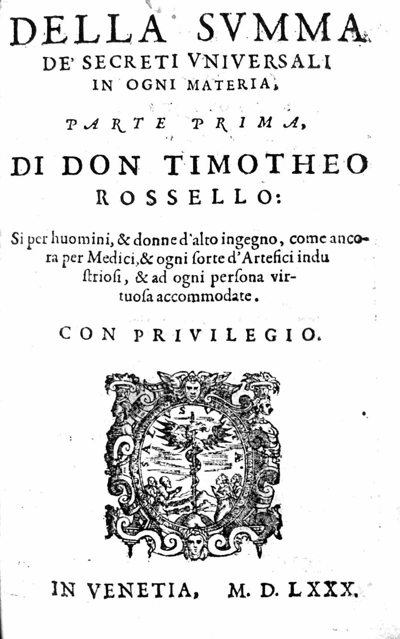 DELLA SUMMA DE I SECRETI UNIVERSALI IN OGNI MATERIA. - Parte Prima (- Seconda). Di nuovo ristampati, et ricorretti.