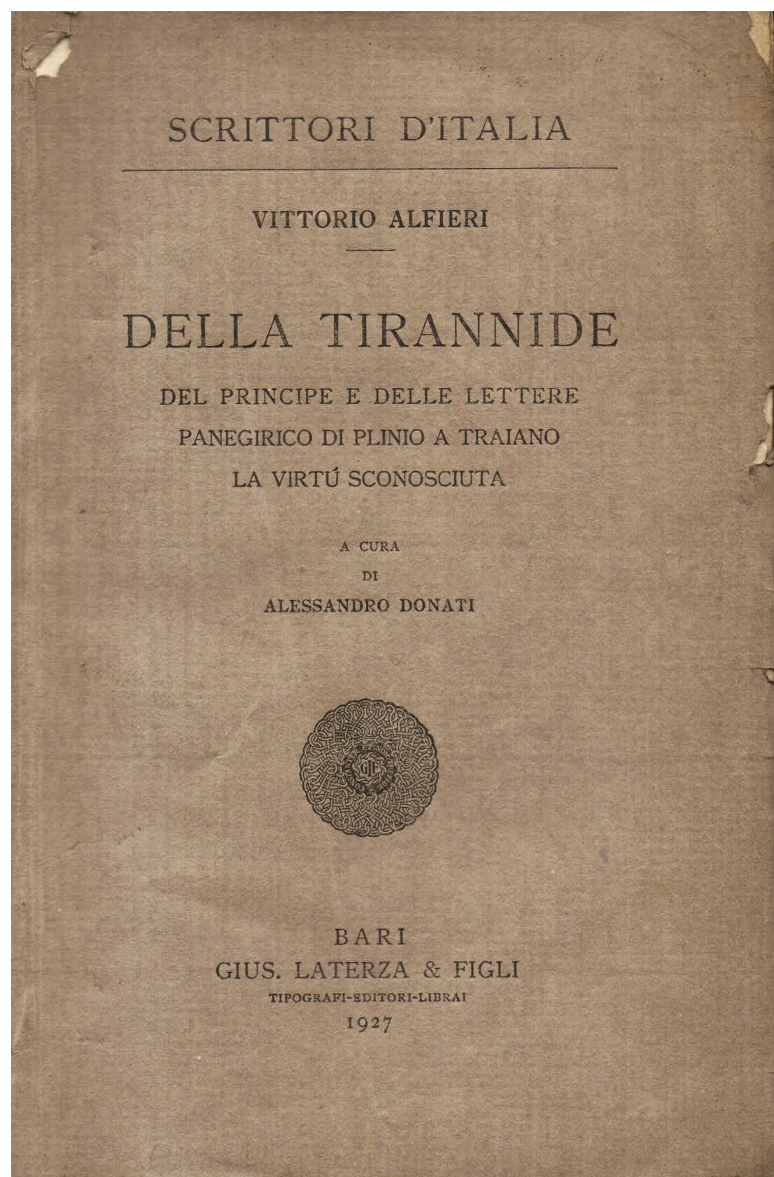 Della tirannide - Del principe e delle lettere - Panegirico di Plinio a Traiano - La virtù sconosciuta. A cura di Alessandro Donati | Libros antiguos y modernos | Alfieri Vittorio