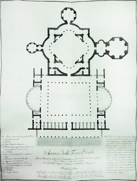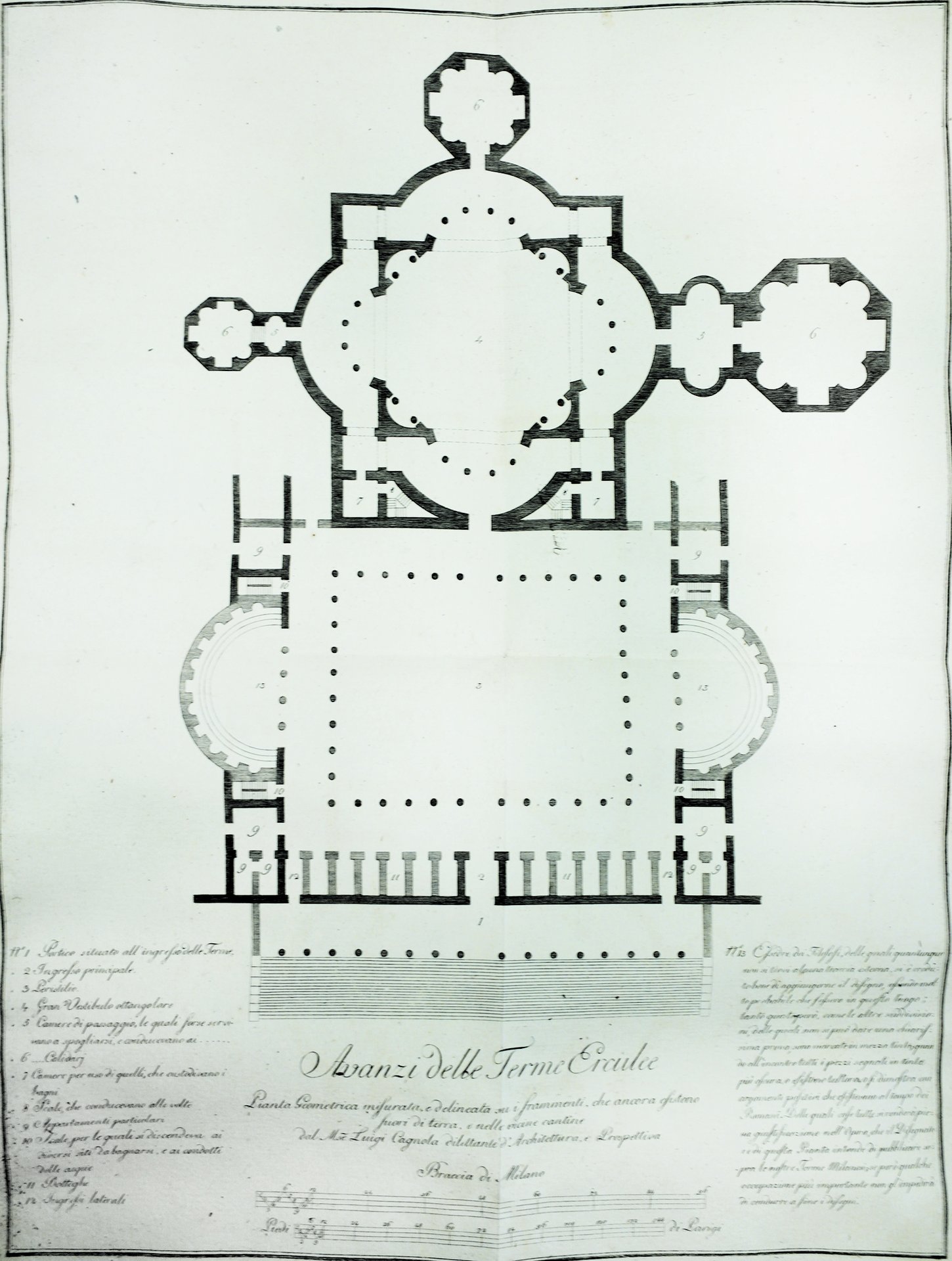 In-4 p. (mm. 288 x 219), 4 volumi, brossura originale (un piatto restaurato per manc., dorsi rifatti), tit. ms. al dorso, pp. XII,364; VIII,407; XII,424; XVI,408; con 6 grandi e belle testat. figurate (alcune di G. Aspar) e 6 tavole più volte ripiegate fuori testo, tutte incise in rame, oltre a una tabella con le disposizioni delle iscrizioni nella facciata posteriore dell'altare della Basilica Ambrosiana. L'opera contiene 40 Dissertazioni in cui l'A. - considerato fra i più grandi storici del Settecento - descrive le leggi, le consuetudini, i costumi dei Longobardi, gli antichi edifici, lo stato del commercio e dell'agricoltura in quel tempo. "Edizione originale". Cfr. Predari, p. 148 - Lozzi,I,2633 - Brunet,I,314 - Cicognara,3933: "opera piena di erudizione e dottrina." - Cat. Hoepli,693 - Graesse,II,647.Solo nel I vol. le ultime 4 carte di Indice restaur. per vistose manc. di testo; altre 2 cc. restaur. per piccoli fori di tarlo che non intaccano però il t., altrimenti fresco e molto ben conservato esemplare con barbe, in parte intonso.