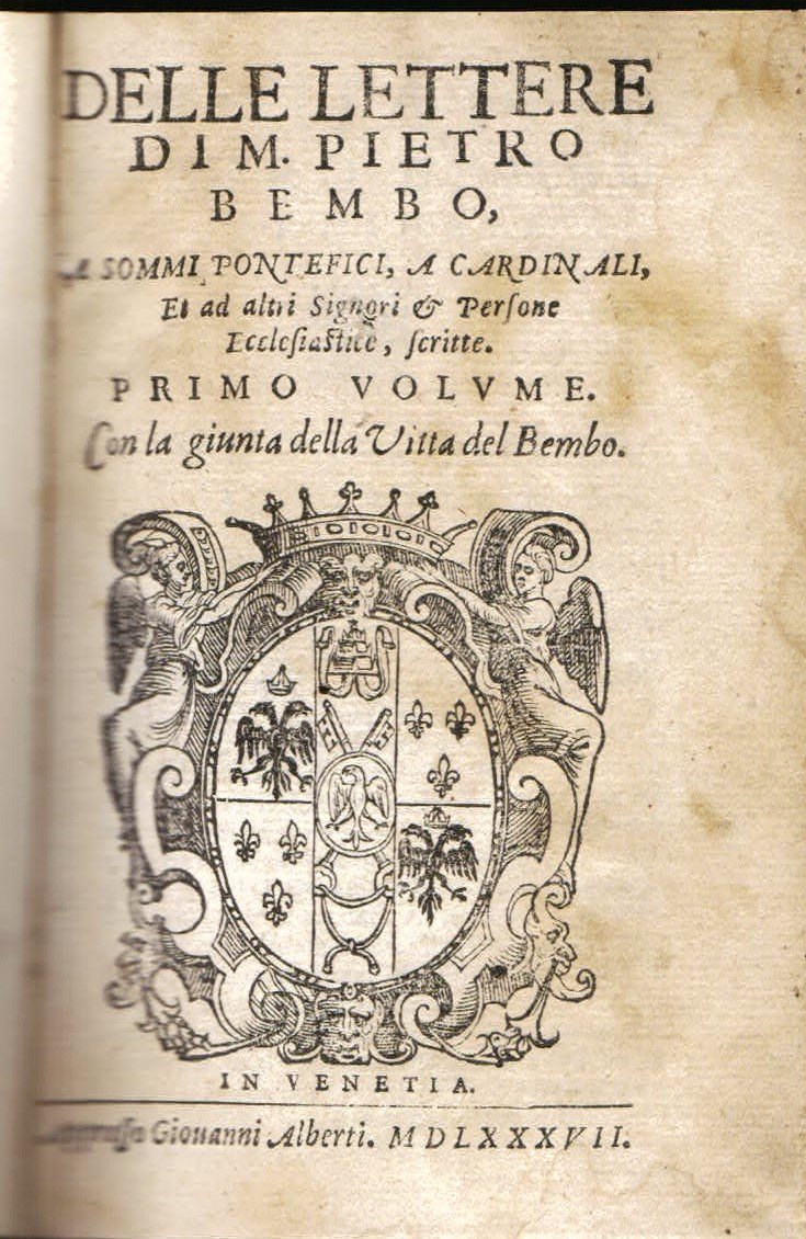 Delle Lettere, a Sommi Pontefici a Cardinali et ad altri Signori et persone Ecclesiastice scritte. Con la giunta della Vitta del Bembo & Delle Lettere a suoi congiunti et amici, et altri gentili huomini venetiani scritte