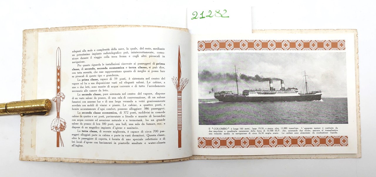 Depliant Brochure Navigazione generale italiana Genova transatlantico Colombo anni '30
