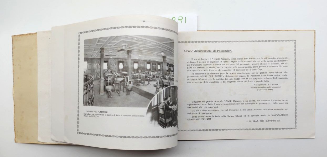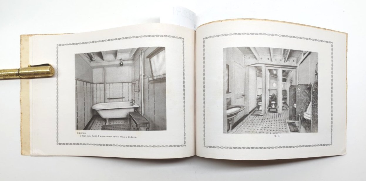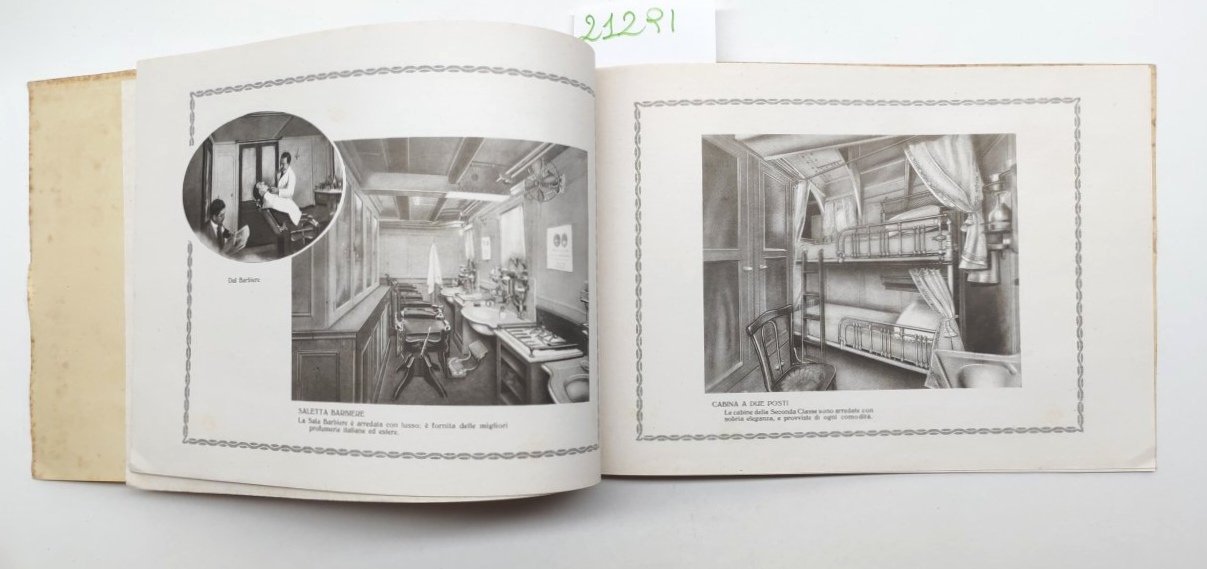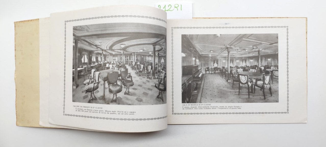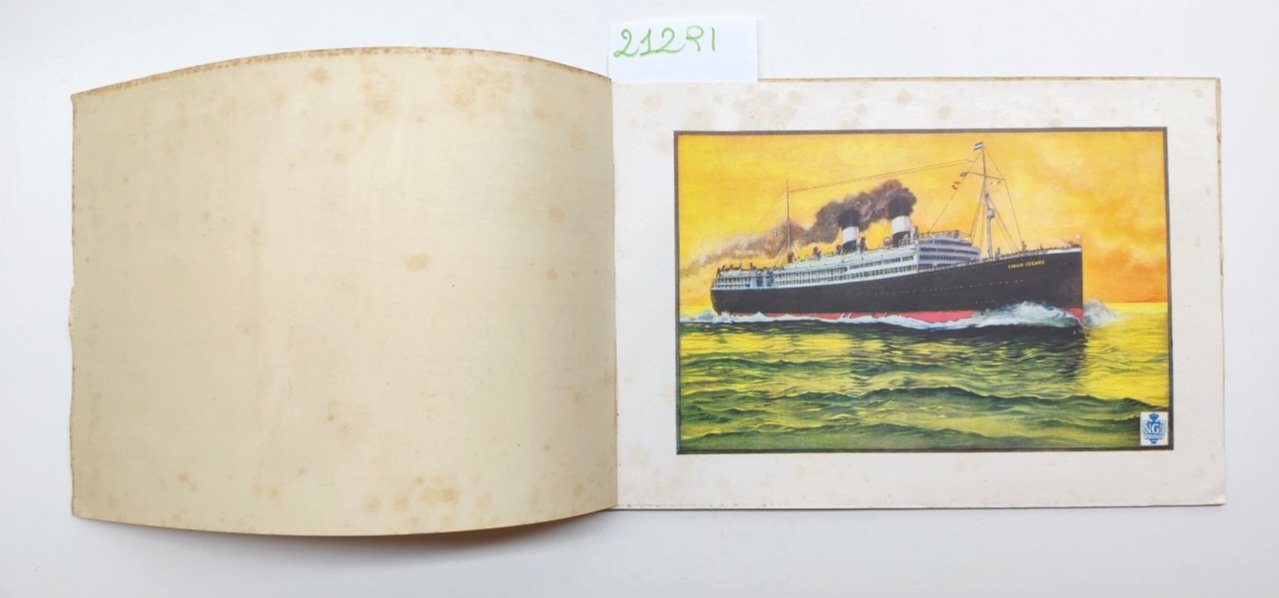 legatura morbida editoriale in discreto stato, lievi aloni e fioriture ai margini dei piatti e del dorso, seconda e terza di copertina con lievi aloni, immagine del piroscafo con fioriture ai margini, vedere immagine, interno il discreto stato, su carta patinata, alcuni lievi aloni alle pagine interne che non disturbano la lettura, numerose immagini in bianco e nero, pagine non numerate dimensioni cm 14,8 x 21,7