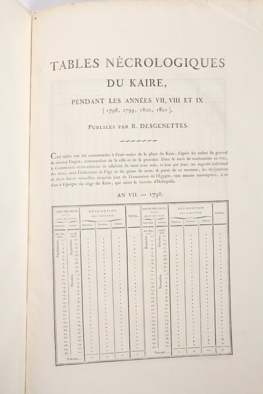 Description de l'Egypte. Tables nécrologiques du Kaire, pendant les années VII, VIII, IX [1798, 1799, 1800, 1801]
