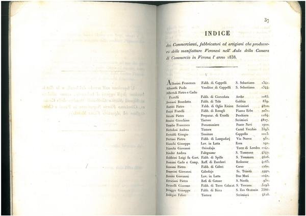 Descrizione delle manifatture veronesi esposte nella sala della camera di comercio arti e manifatture della città e provincia di Verona nella fausta circostanza della venuta di Sua maestà I. R. A. Ferdinando I l'anno 1838