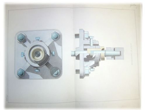 2 vol. in-folio relié demi-chagrin noir, plats de percaline bordeaux avec mention au plat sup. "Ecole Polytechnique 1874-1875 ou 1875-1876 - P. J. Gaillac", 44 ff. et 33 ff. (en grand nombre de dessins et de lavis sont en double page) Rare et beau recueil de dessins et de lavis réalisés par P. J. Gaillac durant ses études à l'Ecole Polytechnique. On trouve dans le premier recueil des dessins d'architecture (soubassement du Palais de la Chancellerie à Rome), de beaux lavis techniques (Théorie du Lavis des volumes, Tore en saillie, tore en creux, tores composés), des dessins du Cours de géométrie descriptive (Exercices d'ombres, Projections côtées, Perspective, Perspective linéaire, Ombres linéaires d'un tore Ombre du piédouche, Vis à filet triangulaire) des dessins du Cours de stéréotomie (Croupe biaise, Limon d'escalier en courbe rampante, Coupe des Pierres avec descente biaise, Arche biaise, Voûte sphérique, Berceau coudé, Escalier suspendu), et une dizaine de dessins d'art. Dans le second recueil, on peut découvrir des dessins techniques réalisés dans le cadre des Cours de mécanique et de machines (Engrenages, Engrenages coniques) dont quelques belles aquarelles (Boulons, Pivot et Crapaudine, Meule, Palier graisseur), des dessins d'architecture (les différents ordres, un beau lavis intitulé Projet de Bibliothèque, lavis de Corps de garde, Projet de restaurant, de mairie, de gare), ou des oeuvres réalisées dans le cadre des cours de dessin ou librement (d'après l'antique, un écorché, et se termine avec trois beau lavis de militaires (un cuirassier, un artilleur et un fantassin). Bon état (dos et mors frottés, 1 f. faible, bel état intérieur) pour ce beau et rare témoignage des études à l'Ecole Polytechnique au lendemain de la défaite de 1870.