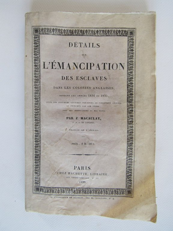 Détails de l'émancipation des esclaves dans les colonies anglaises pendant les années 1834 et 1835