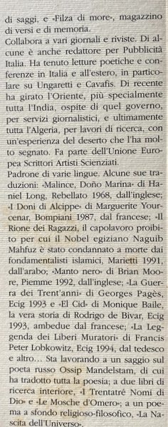 Soggetti: Poeti italiani del XX secolo, Poesia contemporanea, Novecento, Letteratura, Antologie poetiche, Raccolte, Poesie, Poetica, Viaggio, Omero, Odissea, Porti, Kavafis, Epigrafe, Dopoguerra, Itinerario, Ungaretti, Ariodante Marianni, Marciana, Ricordi, Memorie, Umanità, Esistenza, Approdo, Uccelli, Gabbiani, Libertà, Elba, Adolescenza, Mare, Sale, Girovagare, Cammino, Simboli, Libri Vintage Fuori catalogo, Libri rari, Nostos, Lirica, Greco, Grecia, Creta, Isole, Giulio Caprilli, Mediterraneo, Navigazione, Peregrinare, Naufragio, Italian poets of the twentieth century, Contemporary poetry, Twentieth century, Literature, Poetic anthologies, Collections, Poems, Poetics, Travel, Homer, Odyssey, Ports, Cavafis, Epigraph, Post-war, Itinerary, Memories, Memories, Humanity, Existence, Landing, Birds, Seagulls, Freedom, Adolescence, Sea, Salt, Wandering, Way, Symbols, Out of print books, Rare books, Lyric, Greek, Greece, Crete, Islands, Mediterranean, Navigation, Wander, Shipwreck