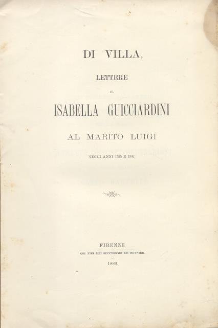 DI VILLA. Lettere di Isabella Guicciardini al marito Luigi negli anni 1535 e 1542. XXI Novembre 1883: Lieto fausto giorno per le nozze di Annetta De' Conti Guicciardini col nobil giovane Carlo Martelli.