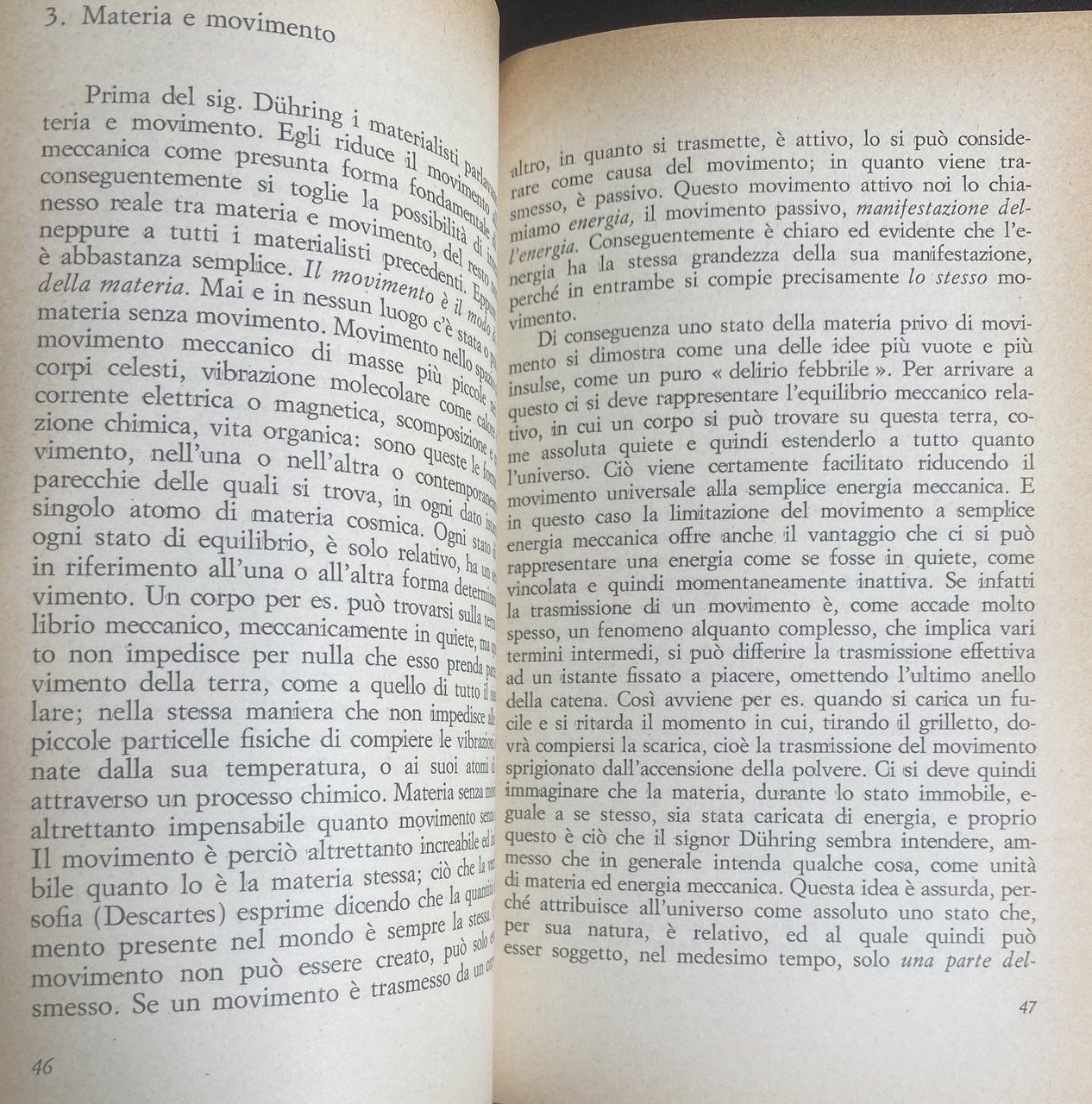 Un'antologia di scritti di Friedrich Engels, curata da Giovanni Mari, che esplora il pensiero di Engels sul socialismo e la dialettica, con particolare attenzione alla sua applicazione alla storia e alla società. L'antologia raccoglie brani significativi dagli scritti di Engels, offrendo una visione ampia e approfondita della sua teoria del socialismo scientifico e del materialismo dialettico. L'opera è particolarmente utile per chi desidera comprendere il pensiero di Engels e il suo contributo allo sviluppo della teoria marxista, con particolare riguardo alla sua concezione della dialettica e della sua applicazione alla storia e al processo sociale. L'antologia è stata pubblicata da La Nuova Italia nel 1975. La curatela permette di comprendere meglio la coerenza e la profondità del pensiero di Engels, in particolare la sua connessione tra dialettica, storia e socialismo. L'antologia include testi che illustrano la teoria di Engels sul materialismo storico, il ruolo della lotta di classe nella storia, e la necessità di una società socialista come passo avanti verso la liberazione dell'umanità.