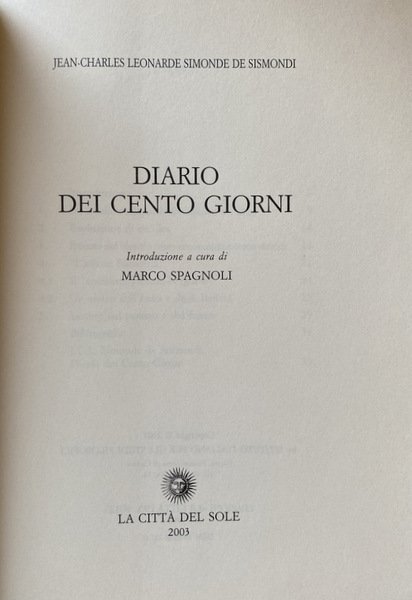DIARIO DEI CENTO GIORNI. A CURA DI MARCO SPAGNOLI