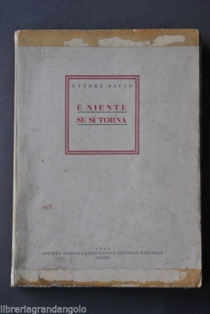 Vedere la descrizione dettagliata Sacco Ettore, E' niente se si torna Società Anonima Torinese, Torino, 1945; 21,7x15,5 cm, pp. 265, timbro vecchia biblioteca circolante estinta, brossura ed. Condizioni di conservazione. Volume con normali tracce d'uso e del tempo, leggere macchiette ai piatti, tracce di adesivo alla coperta, tagli dei margini rifilati, interni buoni con qualche macchietta e ingiallitura. Per libri e documenti su questo e altri argomenti visitate il nostro negozio Libreria Grandangolo" Data l'importanza delle 5 stelle rilasciate durante l'assegnazione del feedback, invitiamo tutti gli acquirenti, se soddisfatti del loro acquisto, a rilasciare tutte le 5 stelle. La mancanza anche solo di una stella illuminata è molto lesiva per noi venditori professionali. Grazie! CONDIZIONI DI VENDITA Spedizione Fino a 5 kg piego di libri raccomandato, oltre i 5 kg pacco postale. Si ricorda che l'imballo viene eseguito con la massima cura. La merce viene spedita a pagamento avvenuto e viaggia a rischio e pericolo dell'acquirente. Per maggiori informazioni vedi la pagina SPEDIZIONI del nostro negozio. Ritiro diretto Siamo disponibili per il ritiro diretto a Modena e a Milano. Per gli indirizzi delle sedi vedi la pagina DOVE SIAMO del nostro negozio. Acquisti multipli Se si acquistano più libri, la spedizione si paga una sola volta, purché si rispettino gli scaglioni di peso. Estero / Foreign For international shipment, please contact us. Metodo di pagamento Pay Pal, bonifico bancario, versamento postale (cc/p, vaglia o altro). La spedizione avverrà entro i primi 4 giorni lavorativi dopo la conferma di avvenuto pagamento. Si emette ricevuta fiscale e a richiesta fattura. Il pagamento deve essere effettuato entro 7 giorni lavorativi dalla data di acquisto, trascorsi i quali l'oggetto sarà rimesso in vendita. Feedback Viene rilasciato dall'acquirente dopo il ricevimento di quanto acquistato. Data la sua importanza, vi invitiamo a leggere il breve testo della pagina FEEDBACK del nostro negozio. Pertanto, in caso di qualsiasi problema, non esitate a contattarci. Diritto di recesso L'acquirente ha il diritto di restituire l'oggetto entro 14 giorni ed essere rimborsato, escluse le spese di porto e imballo. L'oggetto deve essere restituito, dopo previa comunicazione, imballato e nelle medesime condizioni di come era all'origine. Creato da Turbo Lister Strumento gratuito per mettere in vendita i tuoi oggetti. Metti in vendita i tuoi oggetti in modo facile e veloce e gestisci le inserzioni in corso. "