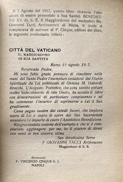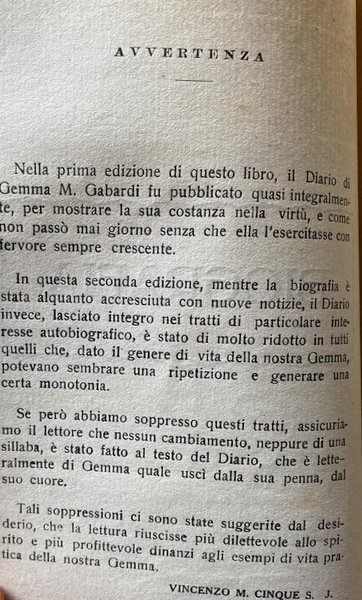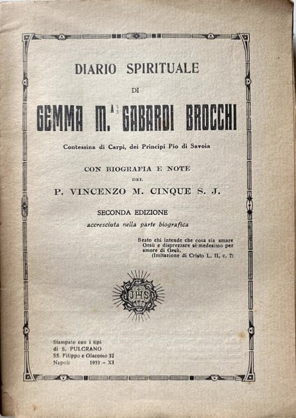 DIARIO SPIRITUALE DI GEMMA M. BROCCHI GABARDI, CONTESSINA DI CARPI DEI PRINCIPI PIO DI SAVOIA. CON BIOGRAFIA E NOTE | Libros antiguos y modernos | P. Vincenzo M. Cinque S.J.