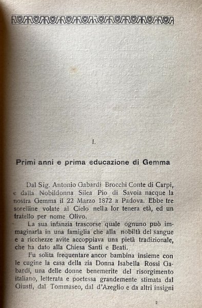 DIARIO SPIRITUALE DI GEMMA M. BROCCHI GABARDI, CONTESSINA DI CARPI DEI PRINCIPI PIO DI SAVOIA. CON BIOGRAFIA E NOTE