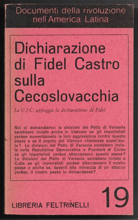 Dichiarazione di Fidel Castro sulla Cecoslovacchia - La U. J. C. appoggia la dichiarazione di Fidel