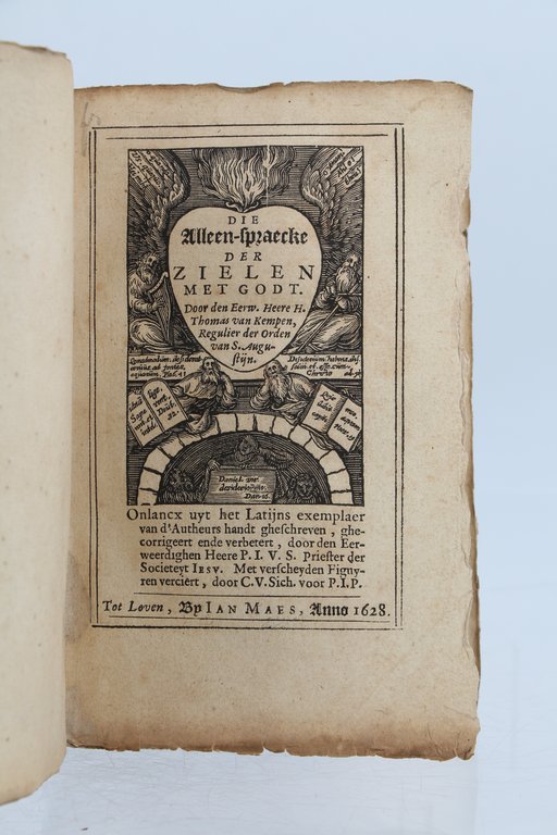 Die Alleen-Spraecke Der Zielen met Godt. Door den Eerw. Heere H. Thomas van Kempen, Regulier der Orden van S. Augustijn. Onlancx uyt het Latijns exemplaer van d'Autheurs handt gheschreven, ghecorrigeert ende verbetert, door den Eerweerdighen Heere P.I.V.S. Priester der Societeyt Iesu. Met verscheyden Figuren verciert, door C.V.Sich voor P.I.P