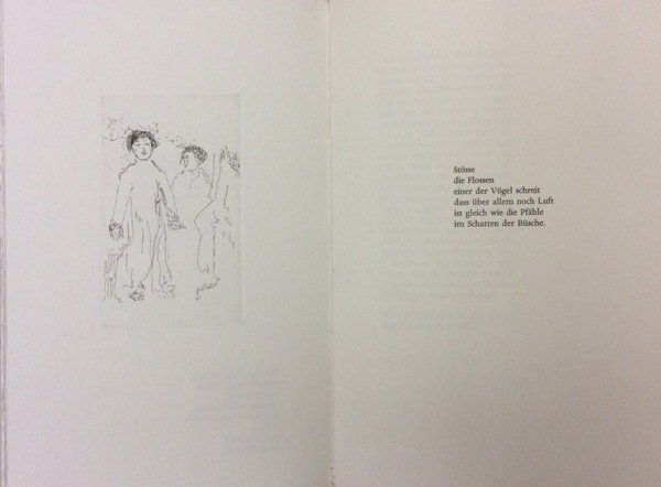 In-8 gr., legatura edit. in brossura con sovracoperta e astuccio ornati da litografie di Richter, pp. (24), testo in tedesco. Raccolta di poesie di Benjamin Richter, autore anche delle 4 belle acqueforti che le illustrano. Prima edizione di 96 esemplari numerati e firmati dall'Autore. Il ns., 56, è in ottimo stato.