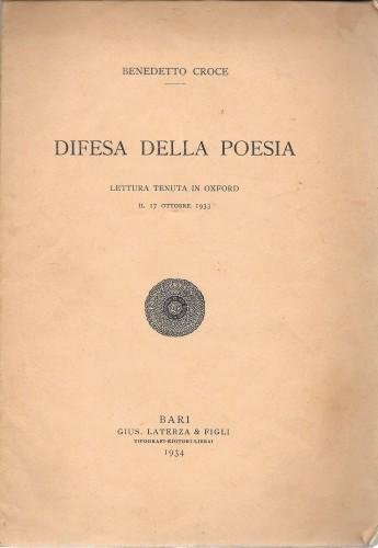 prima ediz., in 8°, pp. 15, bross. edit. Lettura tenuta in Oxford il 17 ottobre 1933. Buon esemplare. 268-39