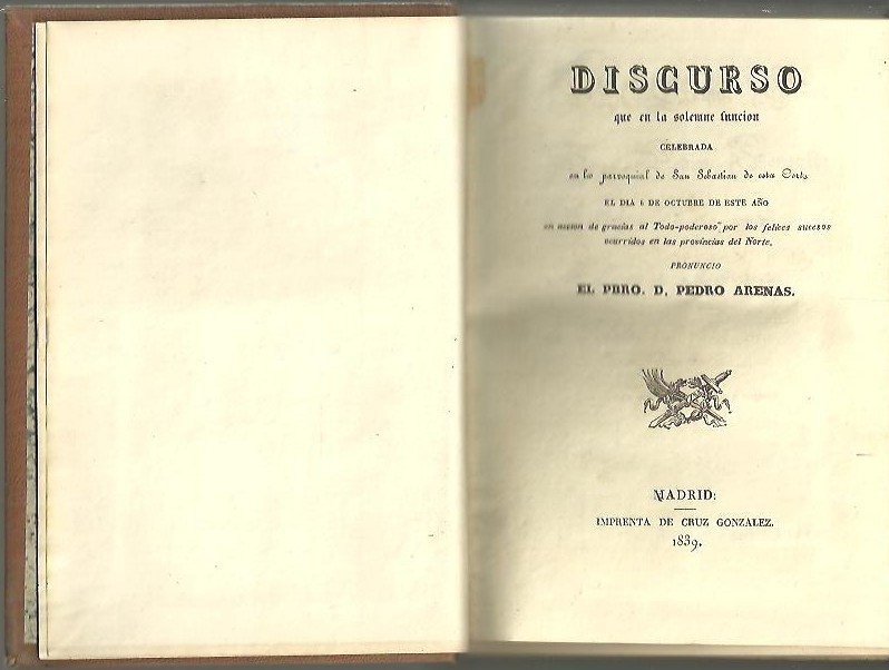 DISCURSO QUE EN LA SOLEMNE FUNCION CELEBRADA EN LA PARROQUIA DE SAN SEBASTIAN DE ESTA CORTE EL DIA 6 DE OCTUBRE DE ESTE AÑO… DISCURSO SOBRE LAS ESCELENCIAS DE LA SABIDURÍA HERMANADA CON LA RELIGION… DISCURSO LEIO EN LA UNIVERSIDAD CENTRAL…