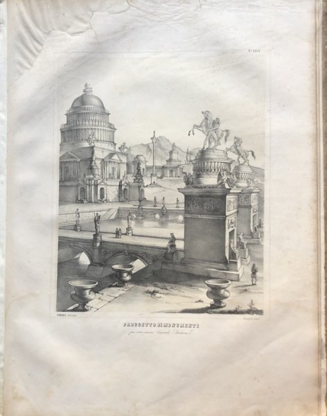 - Architettura, Disegno architettonico, Disegni, Progettazione architettonica, Progetti, Acquarelli, Schizzi, Risorgimento, Libri illustrati rari