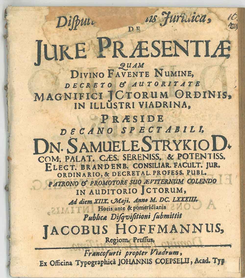 - Strykio Samuele, Hoffmannus Jacobus