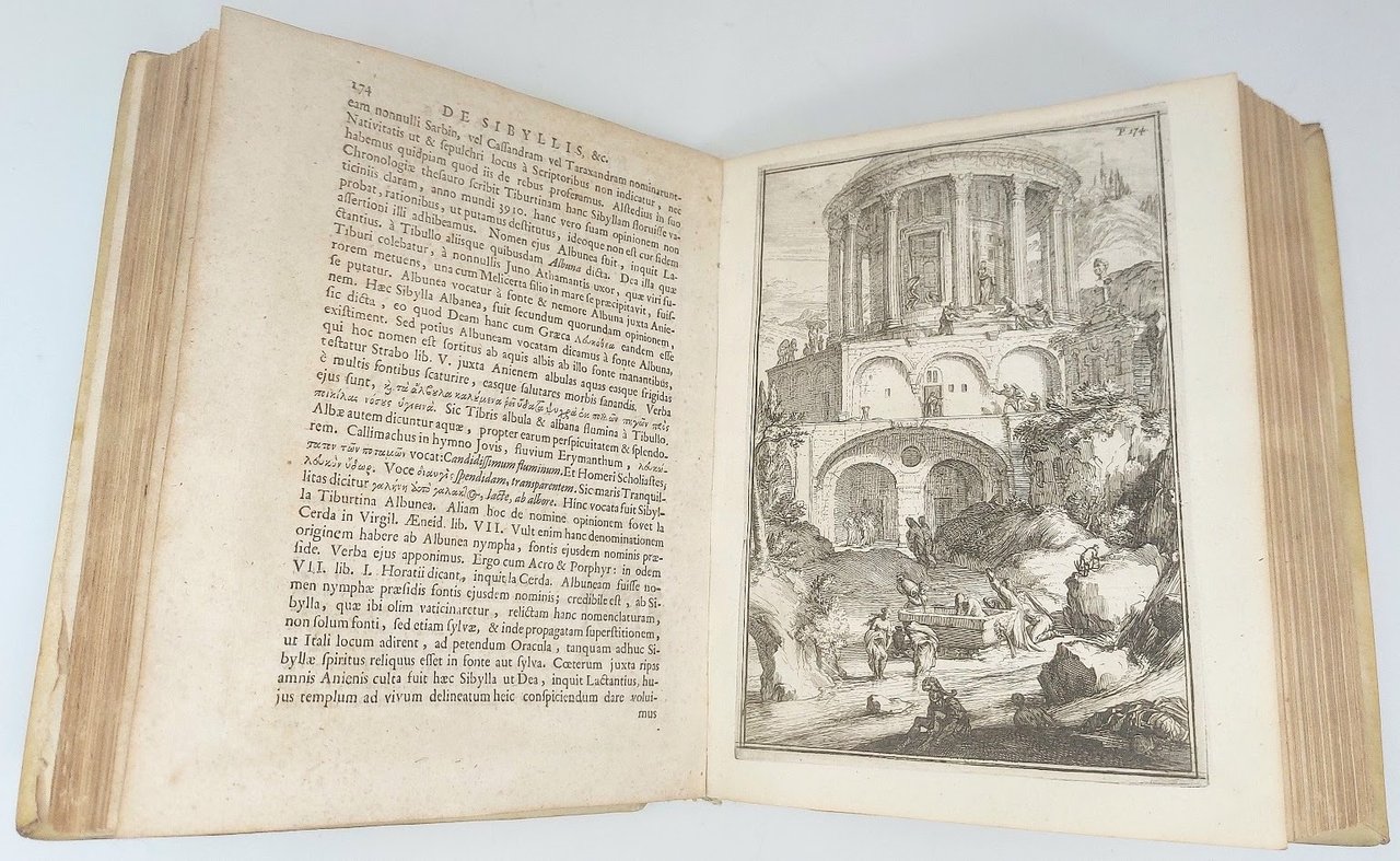 >in-4, ff. (20, compr. antip.), pp. 658, ff. (13), leg. coeva pergamena. Adorno di un bell'antiporta allegorico figurato a piena pag., un grande ritratto dell'autore e 14 tavole fuori testo (di cui 12 raffig. le Sibille), il tutto magistralmente inciso da Romeyn de Hooghe; tre monete inc. n.t. (pag. 442). Marca tip. sul tit., iniz. ornate, testo in car. tondo, corsivo e greco. Prima edizione di importante e curiosa opera, stupendamente illustrata, sulle Sibille e gli oracoli da esse pronunciati, scritta da Gervais Gallé (1627-1709), erudito filologo vallone e pastore protestante. Com'è noto, le Sibille erano antiche sacerdotesse con poteri profetici che venivano consultate da grandi uomini prima d'intraprendere guerre o altre decisioni importanti. Le fantasiose splendide incisioni impreziosiscono l'opera e confermano Romeyn de Hooghe (1645-1708) come uno dei principali illustratori di libri del tardo barocco. Esemplare molto bello. Manca a Dorbon, Bibl. Magica Casanatense e Racc. Verginelli-Rota. Olschki, Choix, IX, 13302. Caillet, III, 10165. Thorndike, VIII, 476. Hollstein, IX, 46-55.