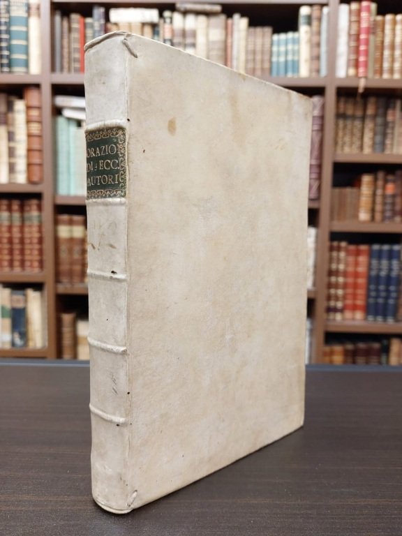 In-16° (cm. 21,2), legatura coeva in piena pergamena rigida, dorso a nervi con titoli in oro su tassello verde (piccoli fori), tagli azzurri, risguardi marmorizzati; pp. [8] 312 in stato molto buono (lievi e sporadiche fioriture). Prima edizione. Marca tipografica con figura di volpe incisa in rame al frontespizio. Esemplare molto buono. (NA3)