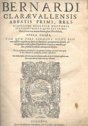 Divi Bernardi Claraevallensis abbatis primi religiosissimi ecclesiae doctoris suavissimique, & quod pro eximia illius pietate non iniuria dixeris, plane Theodidacti, OPERA OMNIA, Tam quae vere Germana illius esse nemo inficias eat…, in 2 voll.