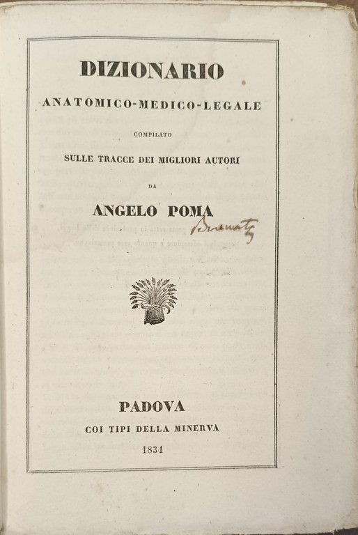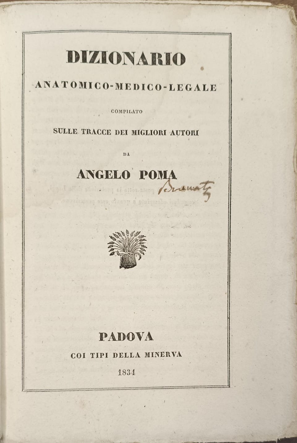 DIZIONARIO ANATOMICO-MEDICO-LEGALE. - Compilato sulle tracce dei migliori autori.