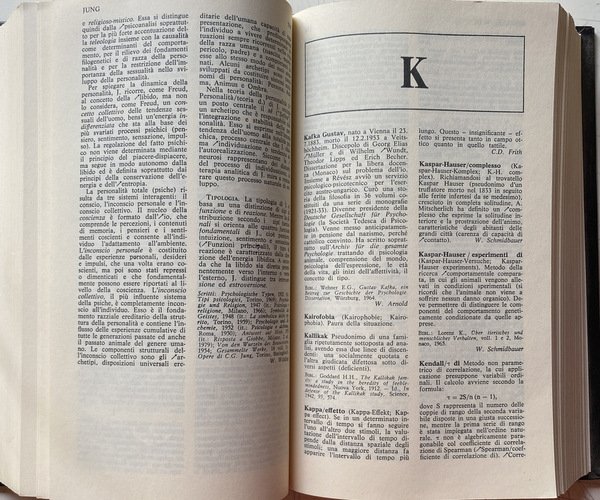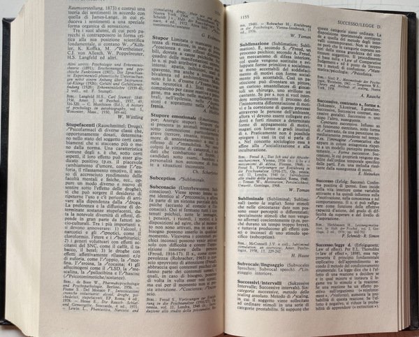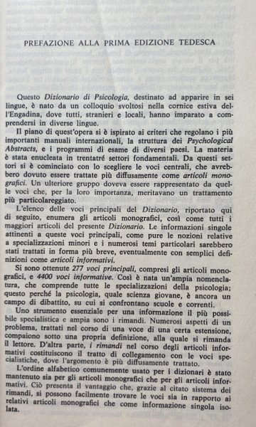 Soggetti: Psicologia, Dizionari, Enciclopedie, Vocabolario, Termini, Concetti, Storia, Psicanalisi, Pensiero, Teorie psicologiche, Cervello, Mente, Comportamento, Personalità, Nevrosi, Malattia mentale, Disturbi psichici, Malattie, Terapie, Cura, Infanzia, Adolescenza, Adulti, Famiglia, Ambiente sociale, Sviluppo psichico, Bambini, Genitori, Sogni, Interpretazione, Critica, Consultazione, Riferimento, Bibliografia, Voci, Analisi, Sociologia, Scienze sociali, Trauma, Rimozione, Carattere, Intelligenza, Test psicologici, Diagnosi, Diagnostica psicologica, Motivazione, Colpa, Responsabilità, Complesso di Edipo, Elettra, Invidia del pene, Emozioni, Sessualità, Identità, Coscienza, Inconscio, Transfer, Processi mentali, Memoria, Schizofrenia, Pazzia, Manicomio, Ospedali psichiatrici, Ricovero, Germania, Francia, Italia, Sigmund Freud, Gustav Jung, Libri Vintage Fuori catalogo, Riviste, Manuali, Orientamenti, Pedagogia, Studi, Concordanze in tedesco, Università, Crimine, Violenza, Aggressività, Bullismo, Adattamento, Q.I., Giochi, Esperimenti, Tossicodipendenza, Alcolismo, Abusi, Effetti, Attenzione, deficit, Ormoni, Influenza, Metodi, Bambini, Relazioni, Corpo, Grafologia, Scrittura, Psychodia, Abstracts, Articoli monografici, Rimandi, Monografie, Definizioni, Significato, Elenchi, Indici tematici, Anni Settanta, Collezionismo, Thesaurus, Specialistica, Correnti scientifiche, Internazionale, America, Europa, Gran Bretagna, Russia, Scienze, Biologia, Informatica, Fisiologia, Neurologia, Medicina, Clinica, Aggiornamenti, Charakter, Persönlichkeit, Pratica, Lemmi, Criteri, Autismo, Arte, Cibernetica, Analgesici, Farmacologia, Farmaci, Associazioni, Atteggiamento, Bisogni, Fedeltà, Felicità, Fechner, Curiosità, Poltergeist, Sublimazione, Behaviorismo, Angoscia, Ansia, Afasia, Dolore, delirio, Depressione, Conflitto, Età, Gestalt, Gruppi, Dinamiche, Gruppo, Libido, Inibizione, Io, Latenza, Identificazione, Incesto, Linguaggio, Mania, Neurosi, Metodo, Modelli, Imprinting, Oblio, Massa, Forense, Filosofia, Fantasia, Fobia, Frustrazione, Isteria, Ipnosi, Perizia, Percezione, Parapsicologia, Popoli, Perversione, Proiezione, Prognosi, Pregiudizio, Linguistica, Regressione, Reminiscenza, Religione, Condotta, Rischio, Sadomasochismo, Scaling, Simbolo, Simulazione, Socializzazione, Tabù, Tossicomania, Sport, Stress, Sogno, Sonno, Vita, Valutazione, Vigilanza, Volontà, Collezionismo, Abitudine, Lurija, Richter, Sachs, Lippert, Lang, Abraham, Adler, Bauer, Dreier, Droz, Galeazzi, Haas, Jodelet, Kaminski, Gaetano Kanizsa, Adolfo Lanyi, Leslie, Krebs, Poggeler, Zazzo, Viglietti, Sokolov, Schmidt, Zubin, Psicosomatica, Kafka, Terman, Fenomenologia, Idoneità, Colori, Cultura, Eaves, Cumming, David, Deuster, Piaget, Deusinger, Deutsch, Mead, Dewey, Durkheim, Duncan, Dostoevskij, Cronbach, Claparède, Conrad, Dalton, Wittling, Young, Yeats, Wolpe, Wundt, Lev Semënovic Vygotskij, Zunini, Zublin, Zimmermann, Witte, Witkin, Psychology, Dictionaries, Encyclopedias, Vocabulary, Terms, Concepts, History, Psychoanalysis, Thinking, Psychological Theories, Brain, Mind, Behavior, Personality, Neurosis, Mental Illness, Mental Disorders, Diseases, Therapies, Care, Childhood, Adolescence, Adults, Family , Social environment, Psychic development, Children, Parents, Dreams, Interpretation, Criticism, Consultation, Reference, Bibliography, Voices, Analysis, Sociology, Social sciences, Removal, Character, Intelligence, Psychological tests, Diagnosis, Psychological diagnostics, Motivation, Guilt, Responsibility, Oedipus complex, Electra, Penis envy, Emotions, Sexuality, Identity, Consciousness, Unconscious, Mental processes, Memory, Schizophrenia, Madness, Asylum, Psychiatric hospitals, Hospitalization, Germany, France, Italy, Out of print books, Magazines, Manuals, Guidelines, Pedagogy, Studies, Concordances in German, University, Crime, Violence, Aggression, Bullying, Adaptation, Games, Experiments, Drug Addiction, Alcoholism, Abuses, Effects, Attention, Hormones, Influence, Methods, Children, Relationships, Body, Graphology, Writing, Monographic articles, Cross-references, Monographs, Definitions, Meaning, Lists, Thematic indices, Seventies, Collecting, Specialized, Currents Scientific, International, Europe, Great Britain, Sciences, Biology, Informatics, Physiology, Neurology, Medicine, Updates, Practice, Criteria, Autism, Cybernetics, Analgesics, Pharmacology, Drugs, Associations, Attitude, Needs, Loyalty, Happiness, Curiosity, Poltergeist, Sublimation, Anguish, Anxiety, Aphasia, Pain, Delirium, Depression, Conflict, Age, Groups, Dynamics, Group, Inhibition, Latency, Unconscious, Identification, Incest, Language, Neurosis, Method, Models, Imprinting, Oblivion, Mass, Forensic, Philosophy, Fantasy, Phobia, Frustration, Hysteria, Hypnosis, Expertise, Perception, Parapsychology, Peoples, Perversion, Projection, Prognosis, Prejudice, Linguistics, Regress Ion, Reminiscence, Religion, Behavior, Risk, Sadomasochism, Symbol, Simulation, Socialization, Social environment, Taboo, Drug addiction, Dream, Sleep, Life, Evaluation, Vigilance, Will, Collecting, Habit, Psychosomatics, Phenomenology, Suitability, Colors, Culture