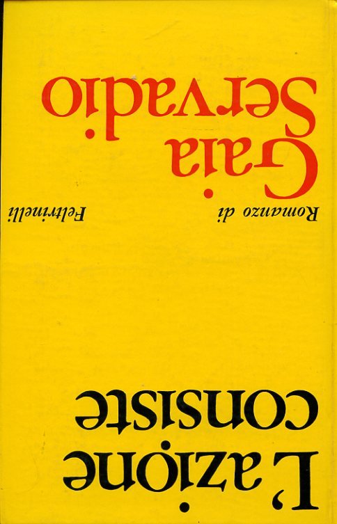 In-8°, pp. 96; LXII (il 'Don Giovanni' è stampato con numerazione araba, 'L'azione consiste' in numerazione romana); cartonatura editoriale gialla con titolo in rosso e in nero. Alcuni disegni in b.n. intercalati n.t., 'ispirati a Salomè e trovatine tipografiche alla Tristram Shandy'. Ottimo esemplare. Edizione originale di questi due romanzi di Gaia Servadio, singolarmente stampati in un libro bifronte, ossia in due versi contrapposti e con due diverse copertine per ciascun verso. I Narratori di Feltrinelli, 120.