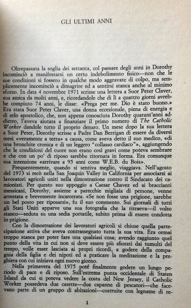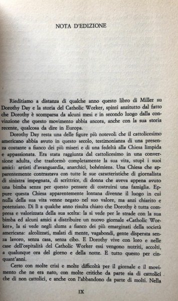Soggetti: Biografie, Memorie, Autobiografie, Dottrina sociale della Chiesa cattolica, Diario, Figure religiose, Spiritualità, Chiesa e mondo, Storia americana, Movimenti religiosi, Pacifismo, Guerra, Israele, Grande Depressione, Sinistra, Artisti, Intellettuali, Bohémiens, Donne illustri, Giornalismo, Società americana, Emarginati, Stati Uniti, Emarginazione, Alcolismo, Vagabondi, Accoglienza, Ospitalità, Senzatetto, Ritiri spirituali, Cattolicesimo, Cristianesimo, Peter Maurin, Fifteenth Street, Povertà, Union Square, Impegno sociale, Lavoratori, Diritti sociali, Chrystie Street, Ammon Hennacy, Pellegrinaggi, Missioni, Evangelizzazione, Suor Peter Claver, Anni Sessanta, Anni Settanta, Sindacati, Giornali, Pubblicazioni cattoliche, Anni Trenta, Anni Quaranta, Anni Cinquanta, Giustizia sociale, Case, Rifugio, Immigrati clandestini, Ostelli, Organizzazione anarchica cristiana, Distributismo, Pauperismo, Industrial Workers of the World, Sindacalismo, Opere di Misericordia, Comuni Agricole, Gioventù Operaia Cristiana, Associazioni cattoliche, Anarchia, Libri Vintage, Fuori catalogo, Saggi, Fonti, Bibliografia, Biographies, Memoirs, Autobiographies, Social doctrine of the Catholic Church, Diary, Religious figures, Spirituality, World, American history, Religious movements, Pacifism, War, Israel, Great Depression, Left, Artists, Intellectuals, Illustrious women, Journalism, Society American, Outcasts, United States, Alcoholism, Marauders, Hospitality, Hospitality, Homelessness, Spiritual Retreats, Catholicism, Christianity, Poverty, Social Engagement, Workers, Social Rights, Pilgrimages, Missions, Evangelization, Sixties, Seventies, Trade Unions, Newspapers, Catholic Publications, 1930s, 1940s, 1950s, Social Justice, Houses, Refuge, Illegal Immigrants, Hostels, Christian Anarchist Organization, Distributorship, Pauperism, Trade Unionism, Works of Mercy, Agricultural Municipalities, Christian Worker Youth, Catholic Associations, Anarchy, Books out of print, Essays, Sources, Bibliography