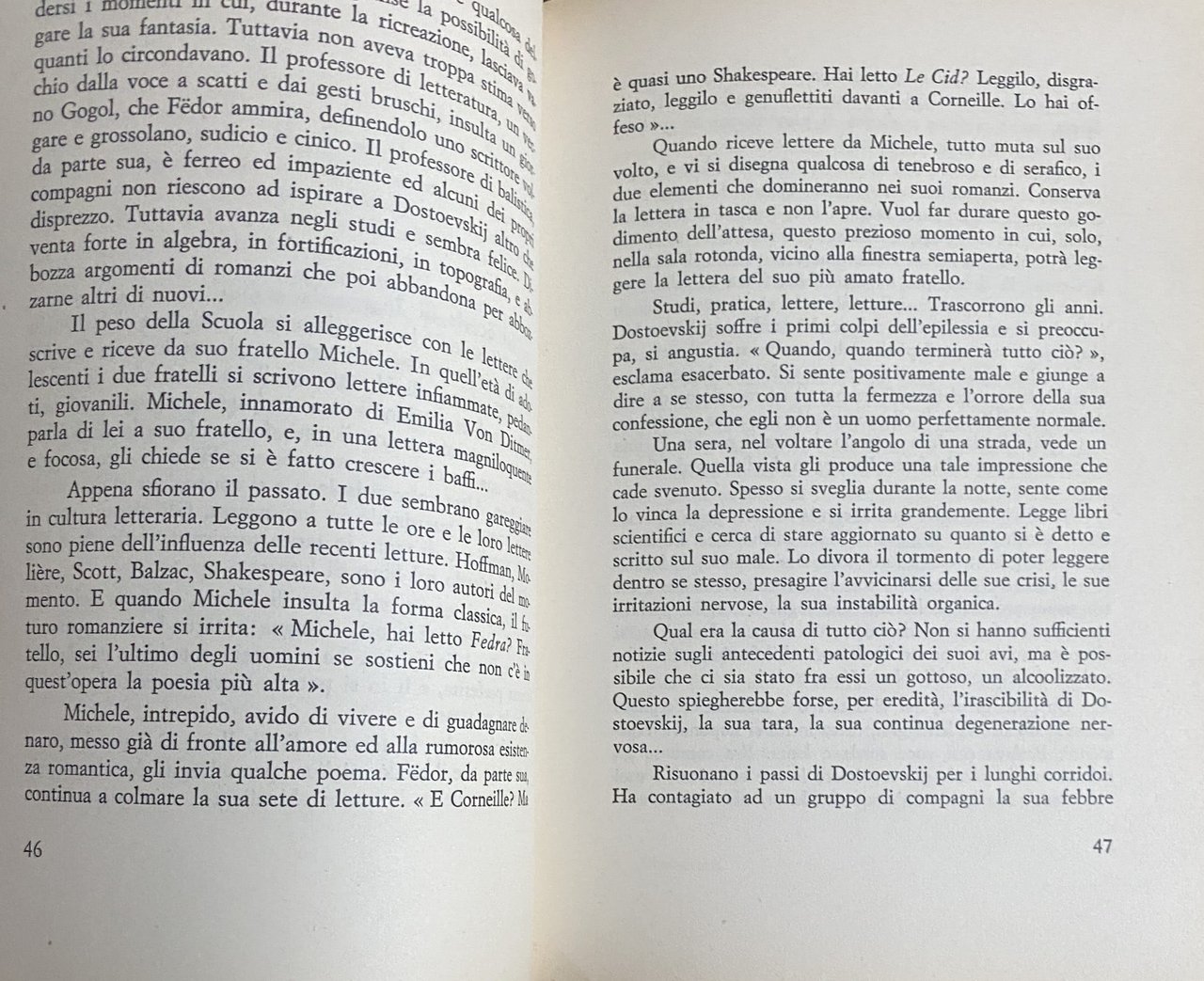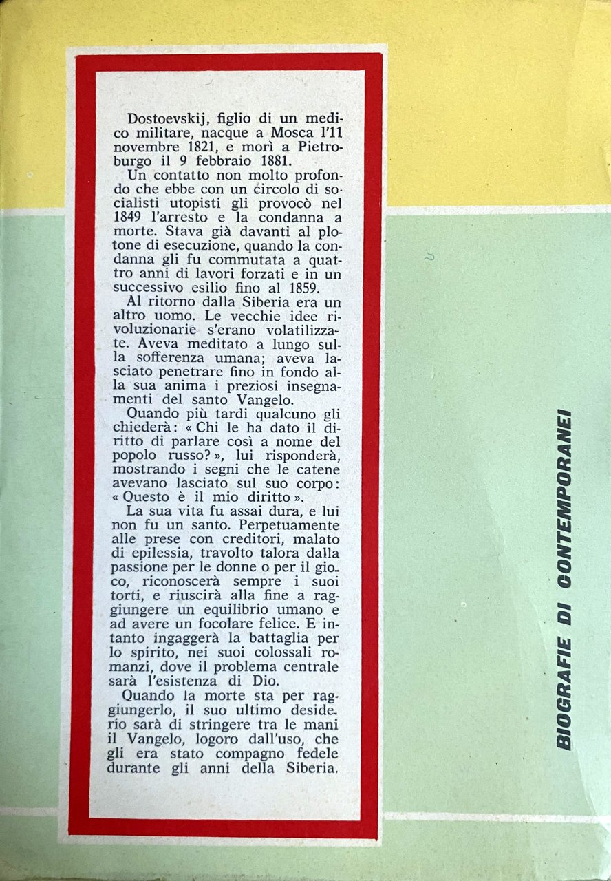 Soggetti: Biografie Critica letteraria Letteratura russa Vita Romanzi Romanzo russo Personaggi Socialismo Romanzieri Pensatori russi Nichilismo Antieroe Stoltezza Cristo Racconti Viktor Ivanovic Nesmelov Il grande inquisitore Cristianesimo Pensiero Filosofia Politica Concezione Stilistica Salvezza Coraggio Scrittori contemporanei Alexis Alioscha Anima Anna Grigorievna André Gide Biografia Lettere Opere complete Delitto e castigo Danilov Darovoye Demoni Dominique Arban Dresda Epilessia Epilettico Frate Fratelli Umiliati offesi Idiota Insulti Katkov Kirillov Lev Tolstoj Levinson Liubov Maria Dimitrevna Michael AndreevichMischa Mosca Morte Donne Nikolai Vsevolodovich Notti bianche San Pietroburgo Notizie Obsdork Omsk Padre Parricidio Ferapont Paisii Povera gente Pushkin Villaggio Rafael Cansinos Assens Raskolnikov Rubli Russia Siberia Semipalatinsk Stavrogin Strakhov Ivan il Terribile Turgenev Zosima Los hermanos Karamäzov Grigor'evna Dostoevskaja Marito Great Sinner Il sosia Casa dei morti Memorie del sottosuolo Il giocatore L'adolescente Ribelli Anarchici Anarchia Conservatori Fede Tradizione Morale Isolamento Aberrazione sociale Convenzioni Sanità mentale Malattia Zarismo Ateismo Verità Giudizio Puskin Progressisti Violenza Assassinio Darwinismo Materialismo storico Superomismo Bene Male Raskol'nikov Omicida Omicidio Peccato Peccatore Chiesa ortodossa Messianismo Intellettuali Populismo Esistenzialismo Psicologismo Russkij vestnik Reclusione Internamento Gulag Collezionismo Libri rari fuori catalogo Europa Est Spirito Scrittura Ottocento Fyodor Nabokov Biographies Literary criticism Russian literature Life Novels Characters Socialism Novelists Thinkers Nihilism Anti-hero Foolishness Christ Stories The Grand Inquisitor Christianity Thought Philosophy Politics Conception Stylistics Salvation Courage Contemporary writers Soul Biography Letters Works Crime and punishment Demons Dresden Epilepsy Epileptic Friar Brothers Humiliated offended Idiot Insults Moscow Death Women White nights St. Petersburg News Father Parricide People Village Rubles The Terrible Husband Double House of the dead Notes from the underground The Gambler Teenager Rebels Anarchists Anarchy Conservatives Faith Tradition Isolation Social aberration Conventions Sanity Illness Tsarism Atheism Truth Judgment Progressives Violence Darwinism Historical materialism Supermanism Good Evil Murderer Sin Orthodox Church Messianism Intellectuals Populism Existentialism Psychologism Imprisonment Internment Collecting Rare Books Out of Print Eastern Europe Spirit Writing Nineteenth Century Poor Folk Gogol Igor Petrovic Rivoluzionari