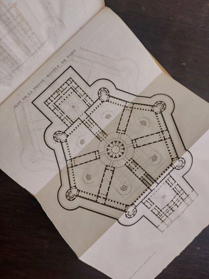 <span style="font-style: normal;">2 parti (di 3) in 1 volume in-8° (cm. 21,7), legatura coeva di poco successiva in mezza pergamena con titolo in oro su tassello nocciola al dorso; pp. XII, CXV [1b], 337 [3] in buono stato (alcune fioriture sparse); 2 tavole fuori testo più volte ripiegate e 1 planimetria incisa più volte ripiegata fuori testo in fine. Membro de la </span><i>Société Royale pour l amélioration des prisons</i>, Charles Lucas divenne Ispettore Generale delle Prigioni, attinse alla sua esperienza e ai suoi viaggi di studio in Europa e negli Stati Uniti per proporre una riforma il cui obiettivo principale era la moralizzazione e l'emendamento dei detenuti. Subito dopo la pubblicazione della prima edizione di quest'opera fu attuata una riforma delle carceri dipartimentali in Francia (cfr. J.-C. Vimont, Saint-Brieuc e Charles Lucas, Criminocorpus). In allegato: «<i>Extrait de la Biographie des hommes du jour, par MM. Germain Sarrut et B. Saint-Edme (tome IV, 2e partie). Biographie de M. Charles-Jean-Marie Lucas</i>», A Paris, chez H. Krabbe, 1839. Esemplare molto buono. (SF5)