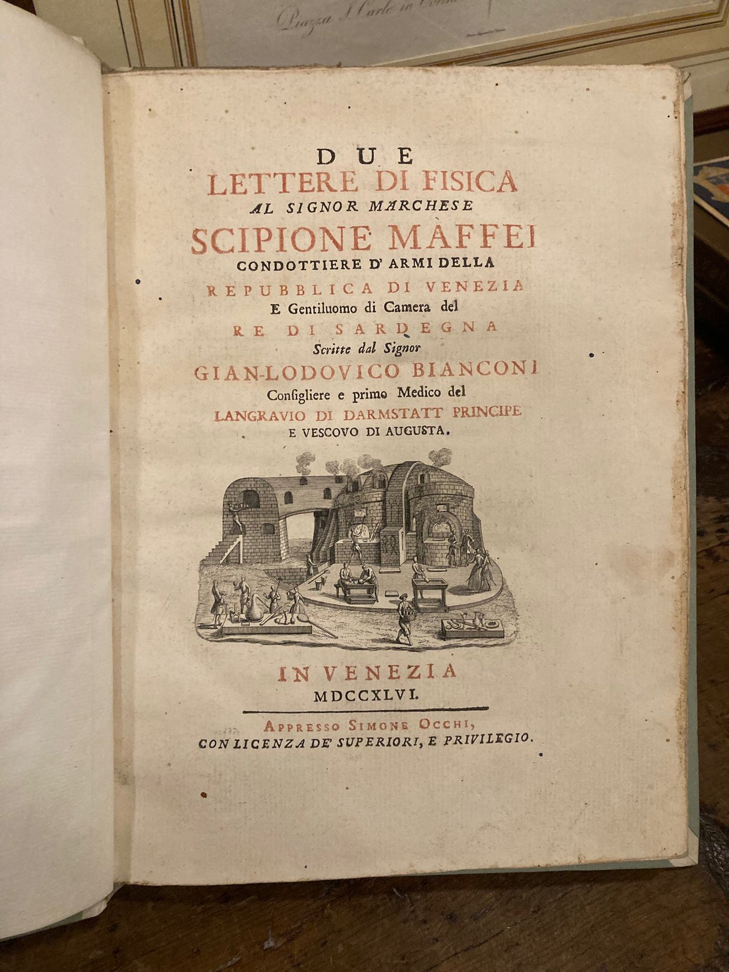 Due Lettere di Fisica al Signor Marchese Scipione Maffei condottiere d'armi della Repubblica di Venezia e gentiluomo di camera del re di Sardegna scritte dal signor Gian-Lodovico Bianconi consigliere e primo medico del Langravio di Darmstatt principe e vescovo di Augusta