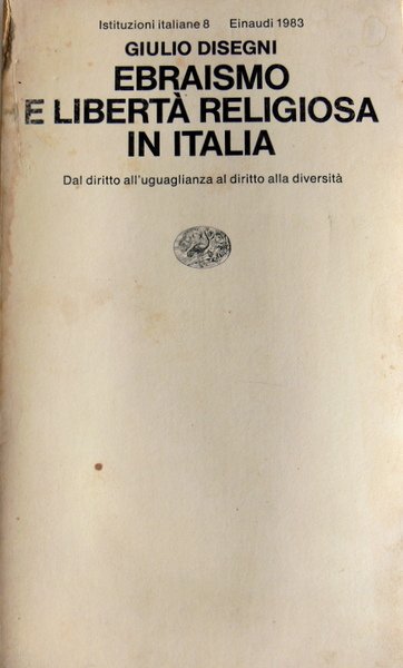 EBRAISMO E LIBERTÀ RELIGIOSA IN ITALIA. DAL DIRITTO ALL'UGUAGLIANZA AL DIRITTO ALLA DIVERSITÀ | Libros antiguos y modernos | Giulio Disegni
