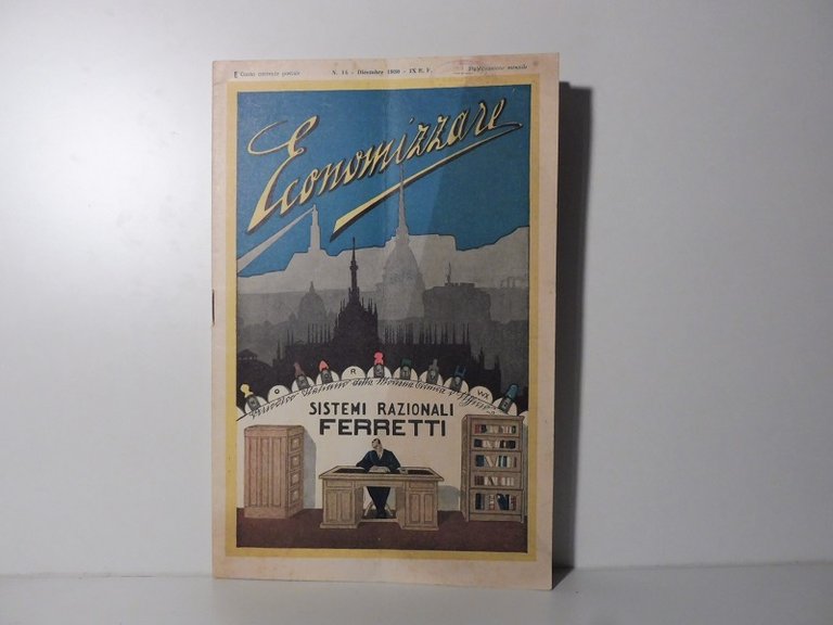 In 8 (cm 15,5 x 24), pagine numerate da 387 al 416 pagine 29 in totale. Illustrazioni in b/nero nel testo. Brossura editoriale illustrata. Catalogo illustrato con i mobili razionali per ufficio prodotti dalla Ferretti (cassettiere, schedari, scrivanie, librerie, cartelliere, porta corrispondenza, armadi per ufficio, porta abiti, porta disegni, ecc.).