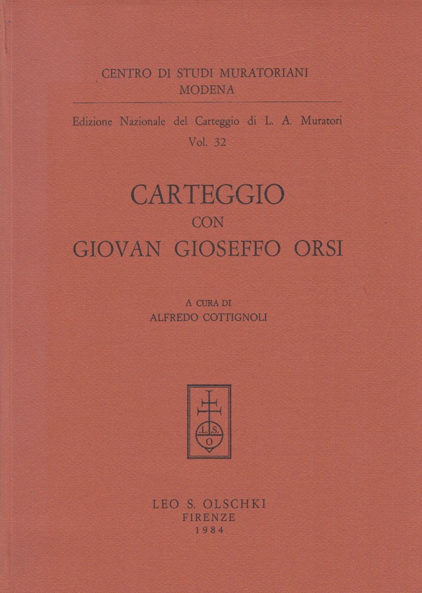 In-4 (Cm 30 x 21,5), pp. 507, brossura editoriale. Collana Edizione nazionale del Carteggio di L.A. Muratori, vol. 32. Piccolo strappetto alla brossura. OTTIMO