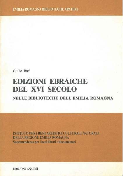 Edizioni ebraiche del XVI secolo nelle biblioteche dell'Emilia Romagna Prefazione di G. Tamari