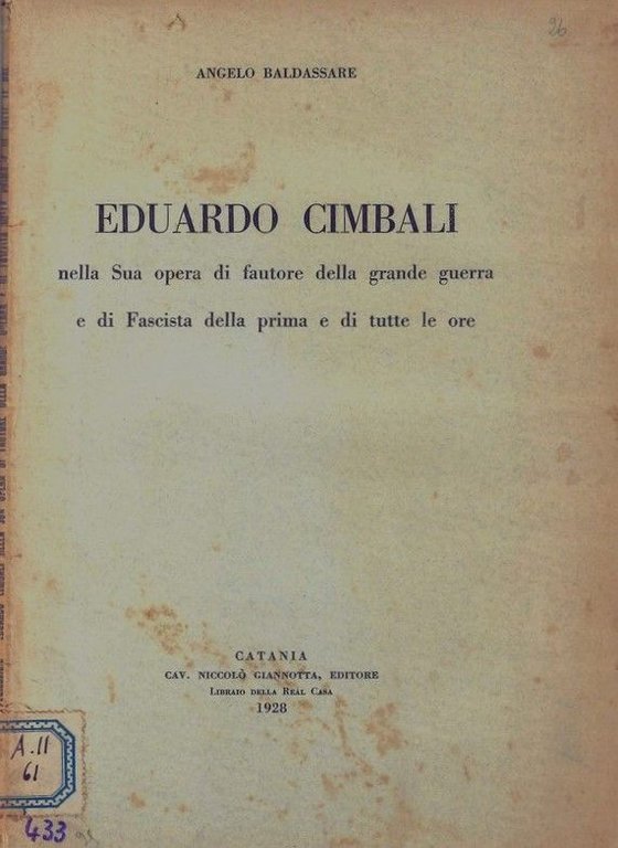 Eduardo Cimbali. nella sua opera di fautore della grande guerra e di fascista della prima e di tutte le ore.