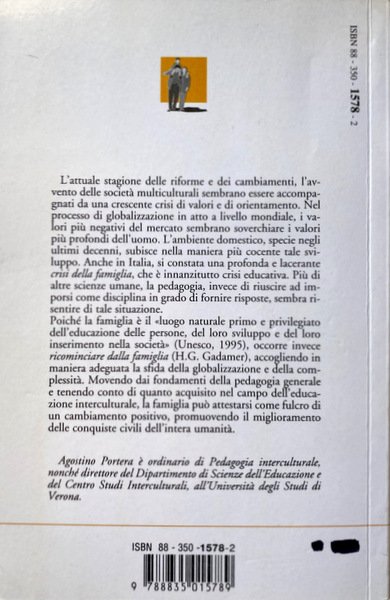 Poiché la famiglia è il «luogo naturale primo e privilegiato dell'educazione delle persone, del loro sviluppo e del loro inserimento nella società»» (Unesco, 1995), occorre invece ricominciare dalla famiglia (H.G. Gadamer), accogliendo in maniera adeguata la sfida della globalizzazione e della complessità. Movendo dai fondamenti della pedagogia generale e tenendo conto di quanto acquisito nel campo dell'educazione interculturale, la famiglia può attestarsi come fulcro di un cambiamento positivo, promuovendo il miglioramento delle conquiste civili dell'intera umanità.