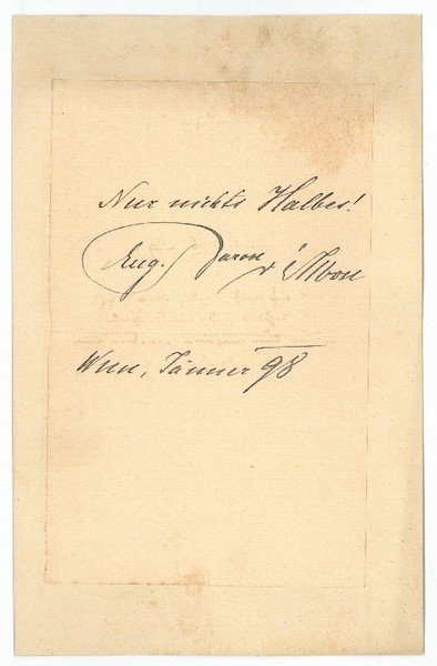 ½ S. 8vo. Alt auf Trägerkarton montiert. Nur nichts Halbes! - Leicht fleckig und angestaubt.