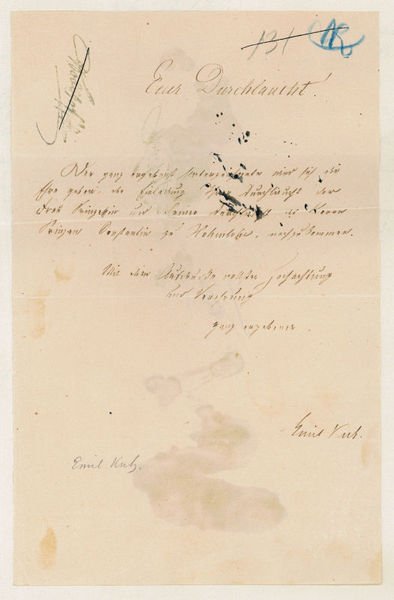 1 S. 8vo. An einen namentlich nicht genannten Adressaten: "Der ganz ergebenst Unterzeichnete wird sich die Ehre geben, der Einladung Ihrer Durchlaucht der Frau Prinzessin und seiner Durchlaucht des Herrn Prinzen Constantin zu Hohenlohe nachzukommen [.]”. - Der mit Friedrich Hebbel befreundete Literaturkritiker und Schriftsteller war seit 1864 Professor für deutsche Sprache und Literatur an der Wiener Handelsakademie und gab gemeinsam mit J. Glaser Hebbels ‘Sämtliche Werke’ (1865-67, 12 Bde.) heraus; seine ‘Biographie Friedrich Hebbel’s’ (2 Bde., 1877) galt lange Zeit als maßgebend. - In altem hs. beschriebenen Sammlungsumschlag montiert; gefaltet.
