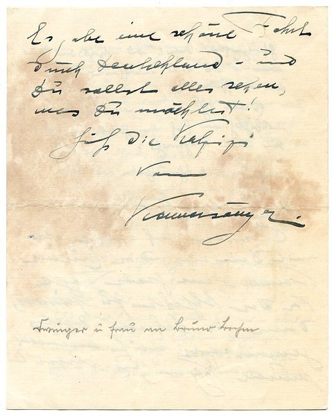 Eigenh. Brief mit U. ("Kammersänger") und eh. Postkarte mit nicht entzifferbarer U.