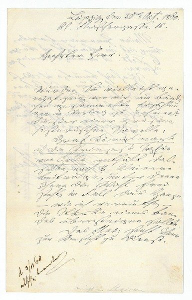 1½ SS. auf Doppelblatt. 8vo. An einen namentlich nicht genannten Verleger: "Würden Sie vielleicht geneigt sein, von mir ein Bändchen gesammelte Erzählungen in Verlag zu nehmen? Außer einer großen historischen Novelle [.] enthält dasselbe noch 8 kleinere Beiträge unter denen Ihnen die Wahl frei steht im Fall das Ganze - wie ich vermuthe - die Stärke eines Bandes übersteigen sollte [.]". - Ludwig von Alvensleben begann nach Beendigung seiner Offizierslaufbahn Rechtswissenschaften zu studieren, ließ sich als freier Schriftsteller in Leipzig und später in Meiningen nieder, wo er vorübergehend das Hoftheater leitete. Alvensleben, der auch unter den Ps. Gustav Sellen und Chlodwig schrieb, zog später nach Wien, wo er wegen revolutionärer Umtriebe verhaftet und zu einer einjährigen Kerkerstrafe verurteilt wurde. Als Unterhaltungsschriftsteller bekannt, war er ebenso wegen seiner Übersetzungen (darunter Werke von Balzac, Sue, Dumas, Moliere, Swift und Defoe) geschätzt.