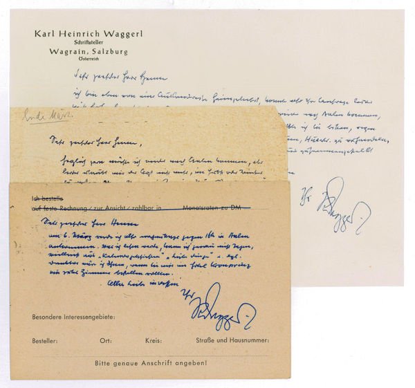 Eigenh. Brief mit U. und 2 eh. Postkarten mit U.